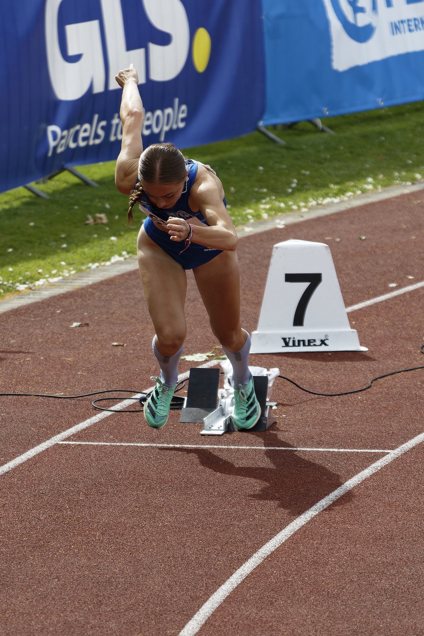 400 Meter Halbfinale am Samstag dem 6. Juli. Bei 17 Vorab-Meldungen und einem starken Teilnehmerinnenfeld sowie kühlen Temperaturen und böhigem Wind startete Lea im 2. Halbfinale 400 Meter Sprint. Von Beginn an hatte sie das Teilnehmerinnenfeld